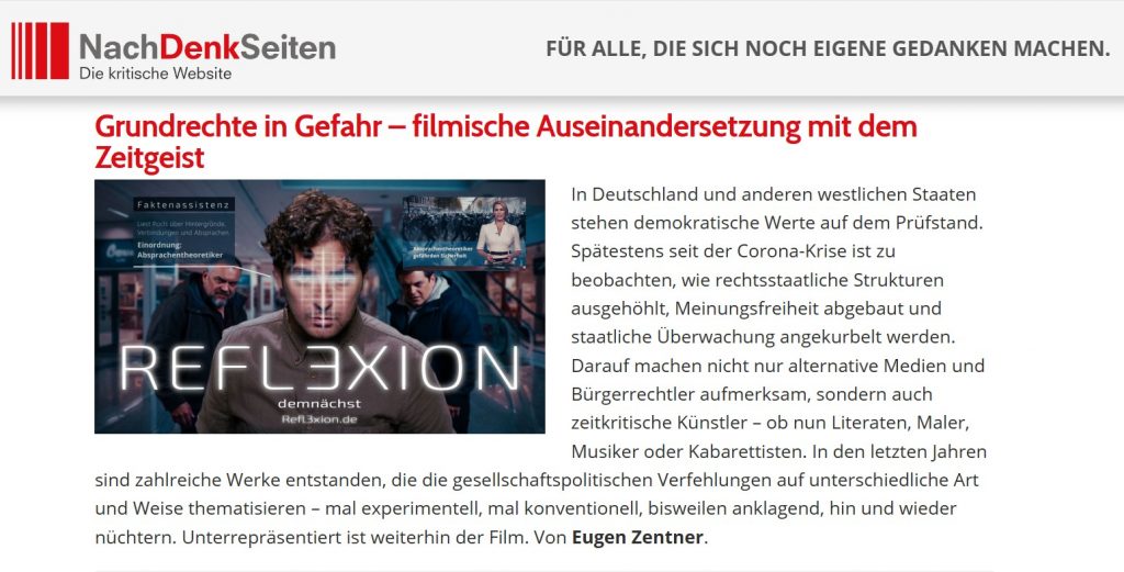 Unsere Initiative zur Bewahrung von Grund-, Menschen-, Verbraucherrechten, Meinungspluralität, freiheitlicher Demokratie, Frieden und Selbstbestimmung engagiert sich mittels Produktion und Verbreitung von Filmspots, Kinoschaltung, innovativer Öffentlichkeitsarbeit, News und weiteren Projekten.